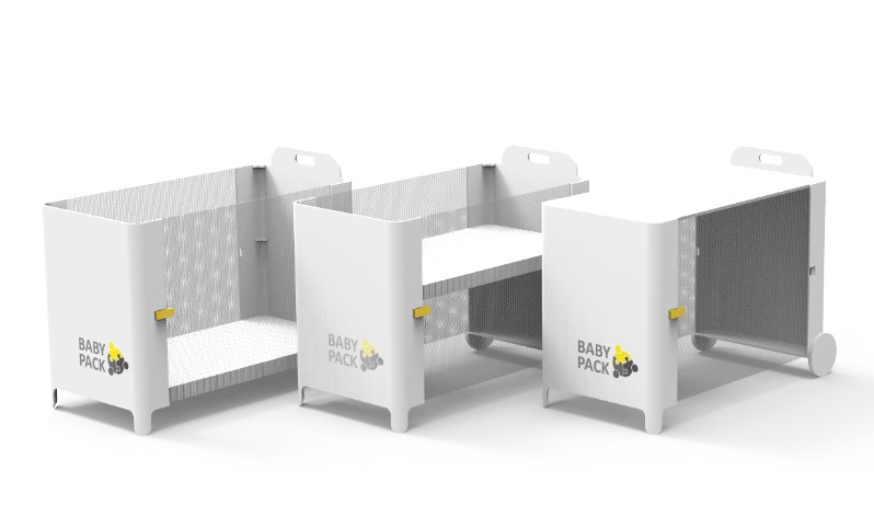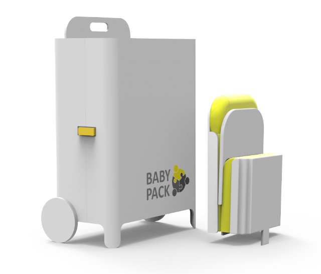 BabyPack es una maleta portatil que se transforma en cuna y agrupa en su interior todos los esenciales de viaje del niño.