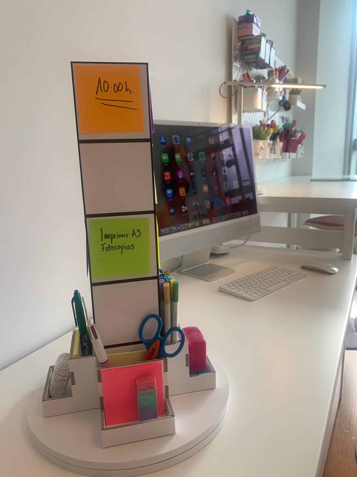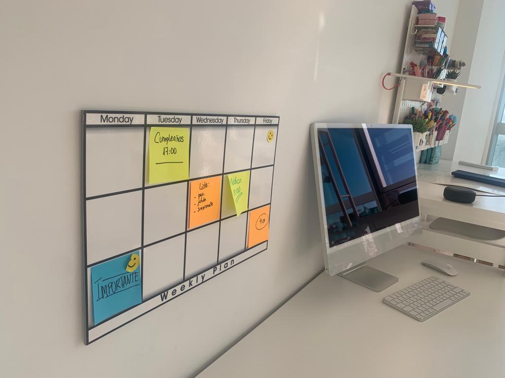 Un invento inteligente creado para pegar notas adhesivas en él, una vez despegadas y anotado. Incluye un adhesivo especial soporte para blocs de notas.