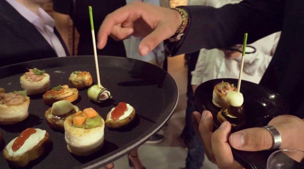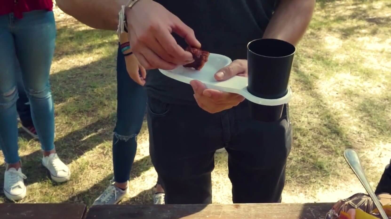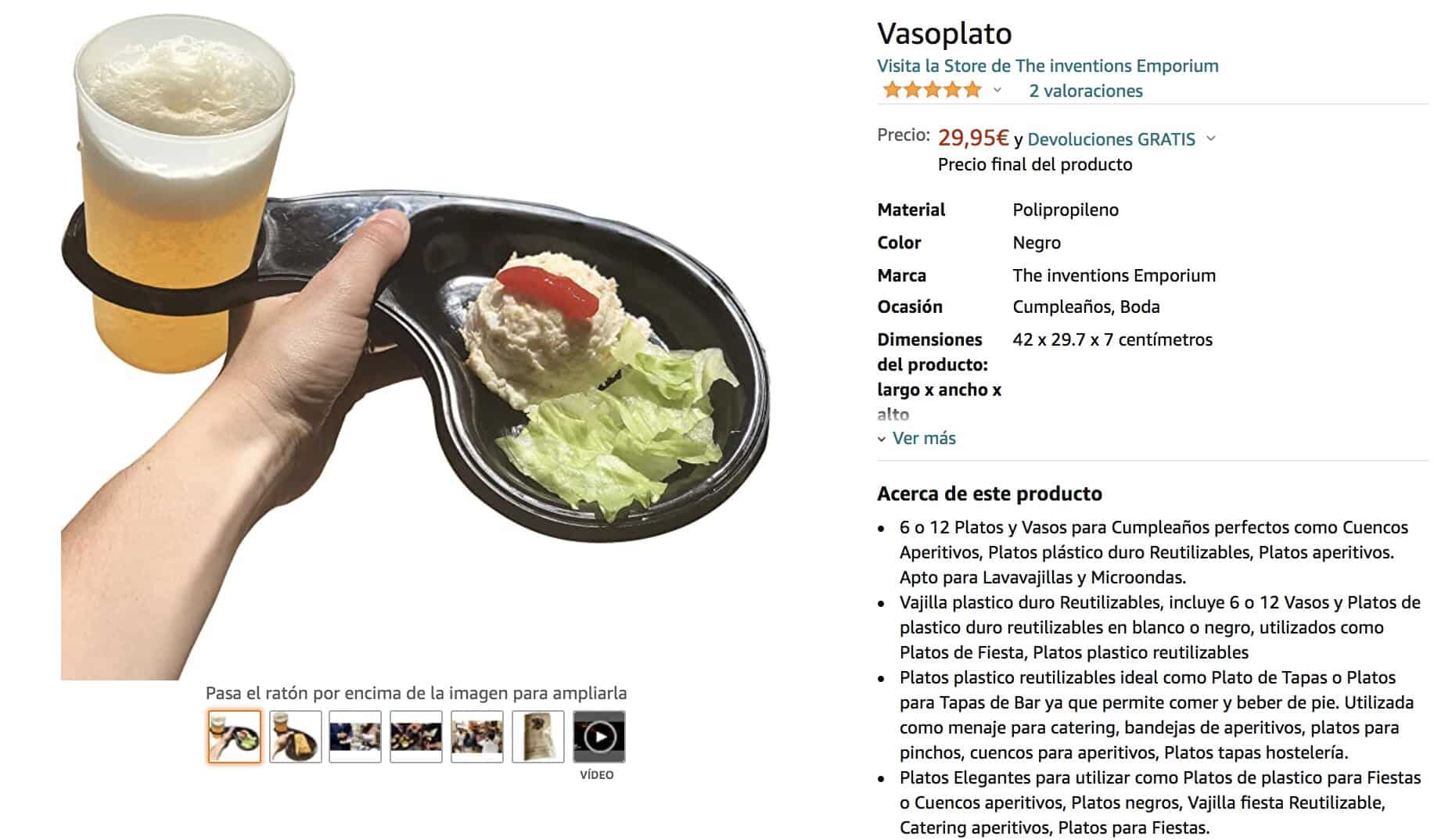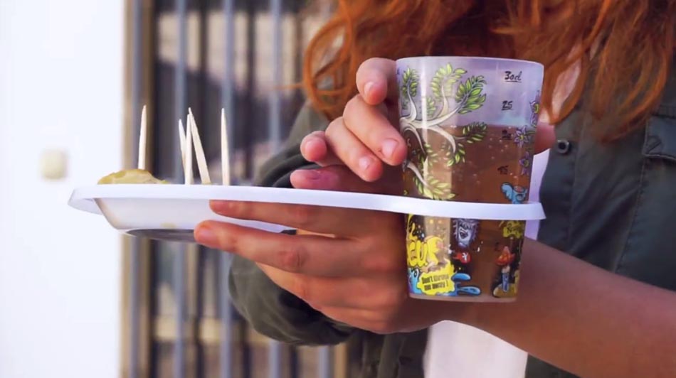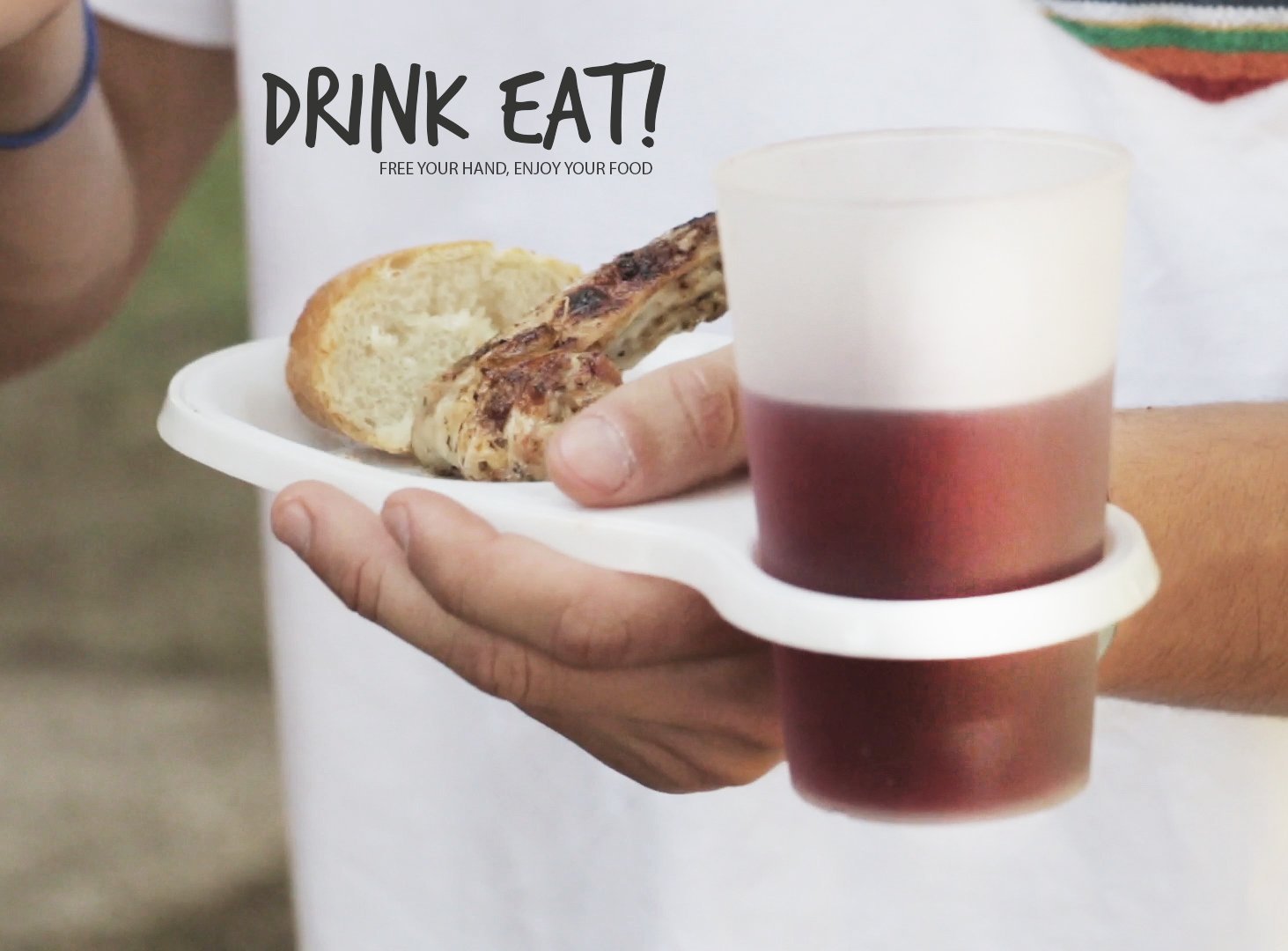 Vasoplato es una bandeja que permite comer y beber con una sóla mano. Resulta muy útil para catering, ferias gastronómicas, eventos publicitarios,…